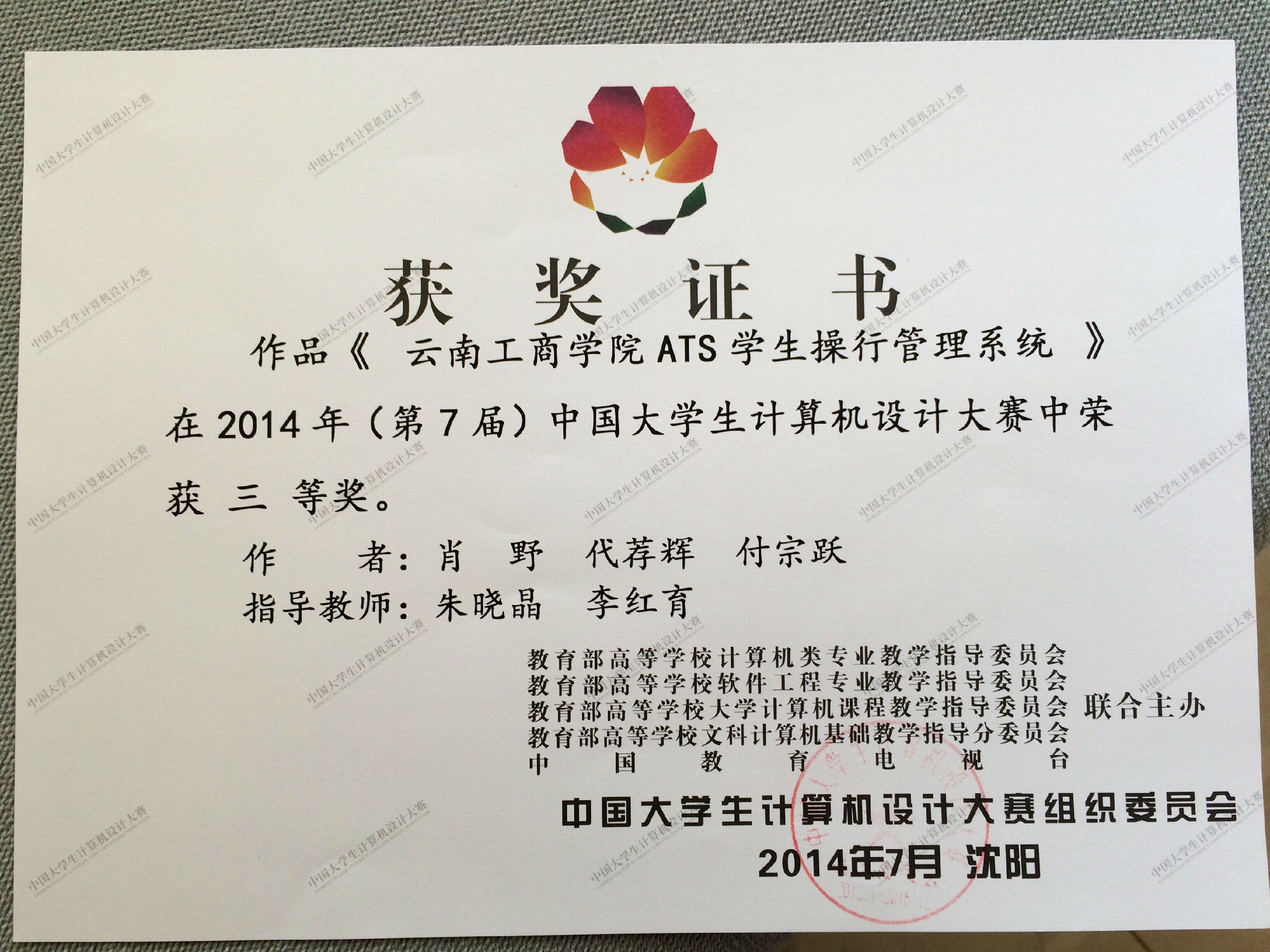 (全国赛)中国大学生计算机设计大赛中荣获三等奖