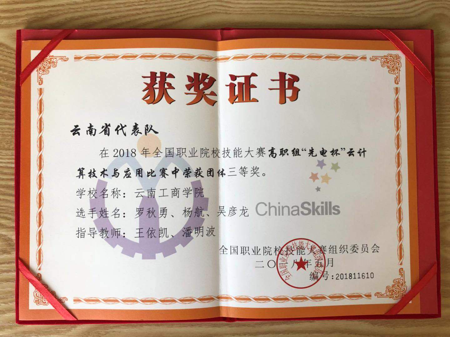 在2018年全国职业院校技能大赛上,云南工商学院信息工程学院代表云南省参加(云计算技术应用比赛)获得团体三等奖。