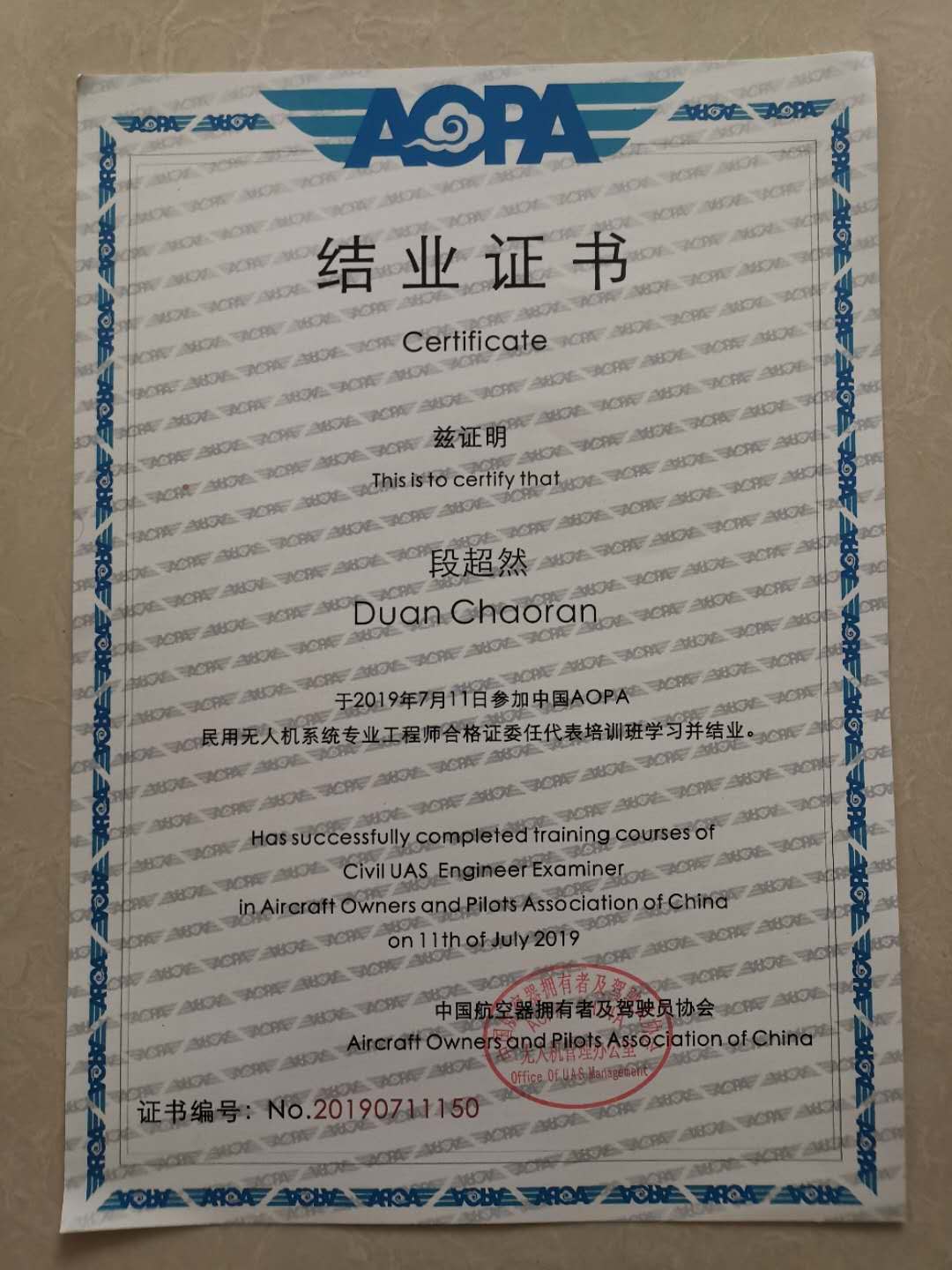段超然,16级电气工程及其自动化专业毕业生,获得多个云南全国无人机技能大赛奖项,现在从事无人机装配检修工作,月薪7000+,该生还获得了系统工程师委任代表和无人机驾驶员合格证委任代表。