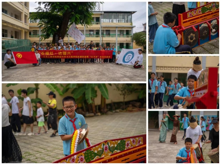 歌声飘扬,青春激昂!实践团队和户允小学的孩子老师们用歌声传递对祖国的热爱,对民族的自豪。不同民族的音乐在这里交融,展现出中华文化的博大精深。
