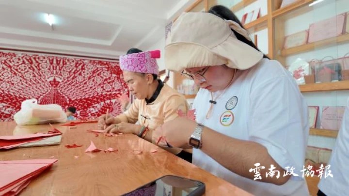 团委书记杨習说道:“剪纸不仅仅是技艺的展现,更是情感的寄托和文化的传承。”在户么村的老艺人指导下,团队成员们认真学习如何握剪、如何构思、如何下剪。“咔嚓、咔嚓……”随着剪刀在红纸上的灵活游走,一幅幅精美的剪纸作品逐渐展现在大家眼前。从简单的图案到复杂的场景,每一次尝试都凝聚着同学们对传统文化的敬畏与热爱。