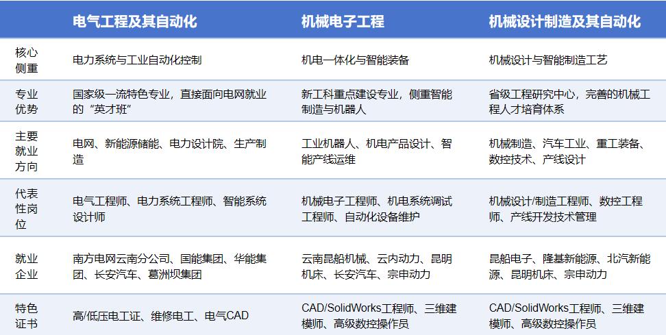 扎体系化的培养最终落脚于高质量就业。三大专业凭借鲜明的特色与过硬的教学质量,成为相关领域企业争相招揽的“人才高地”,毕业生专业对口就业率长期保持高位。其中,机械设计制造及其自动化专业就业率达98%以上,毕业生纷纷入职昆船电子、隆基新能源、北汽新能源、昆明机床、宗申动力等行业标杆企业,更有学生成功深造至昆明理工大学等高校。
