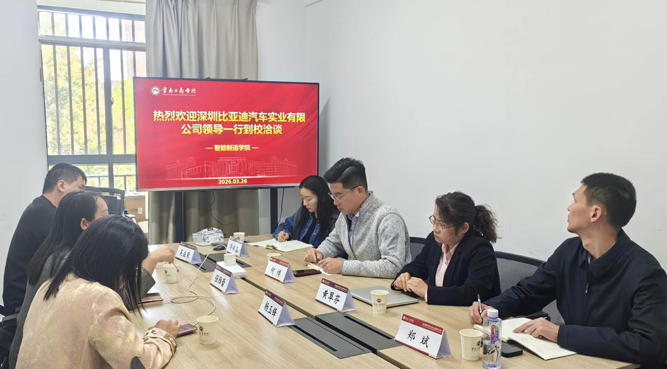 3月26日上午,智能制造学院院长何博、学生发展中心主任郑斌与比亚迪汽车实业有限公司相关领导展开深入洽谈,双方就校企合作、校企共建等事宜达成全面共识,正式开启我院与比亚迪高端制造板块校企合作的新篇章。