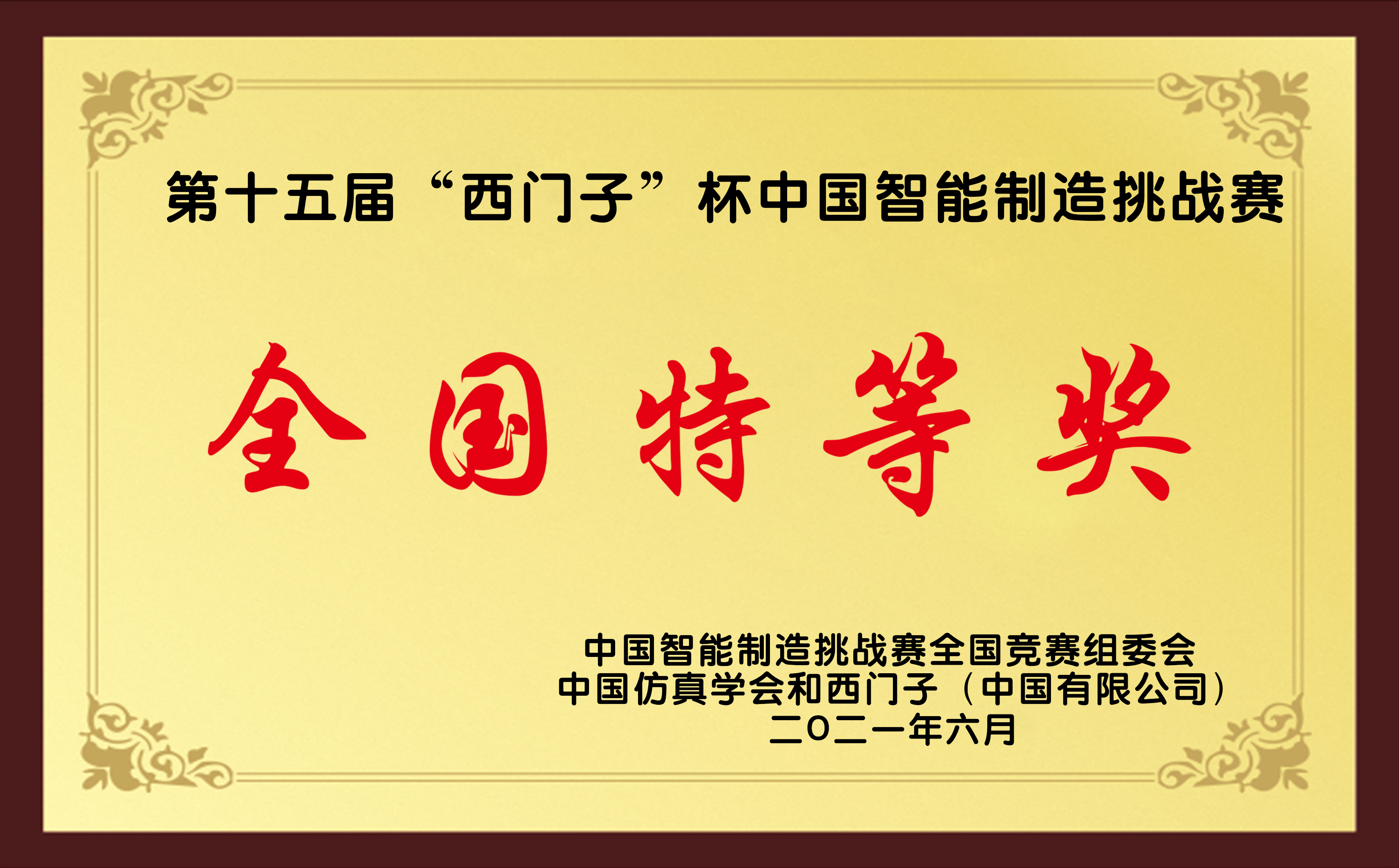 第十五届“西门子”杯中国智能制造挑战赛全国特等奖
