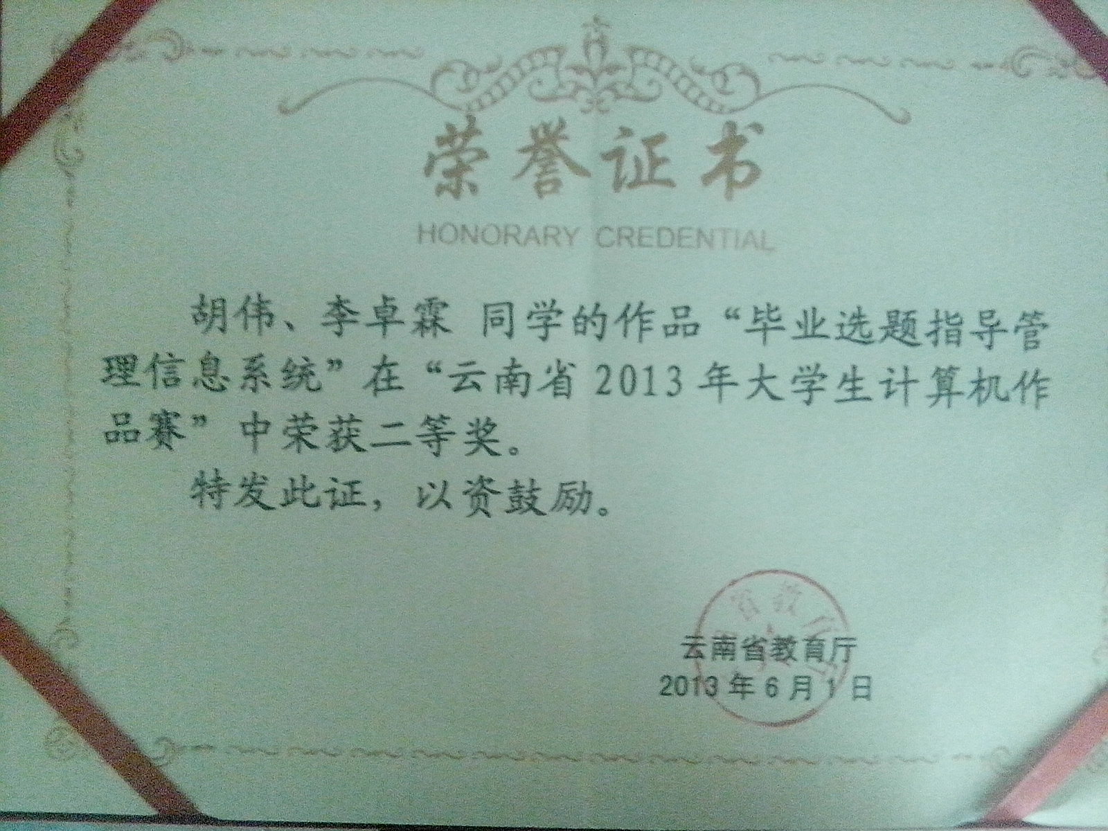 (云南省)云南省“联想杯”大学生计算机设计大赛二等奖