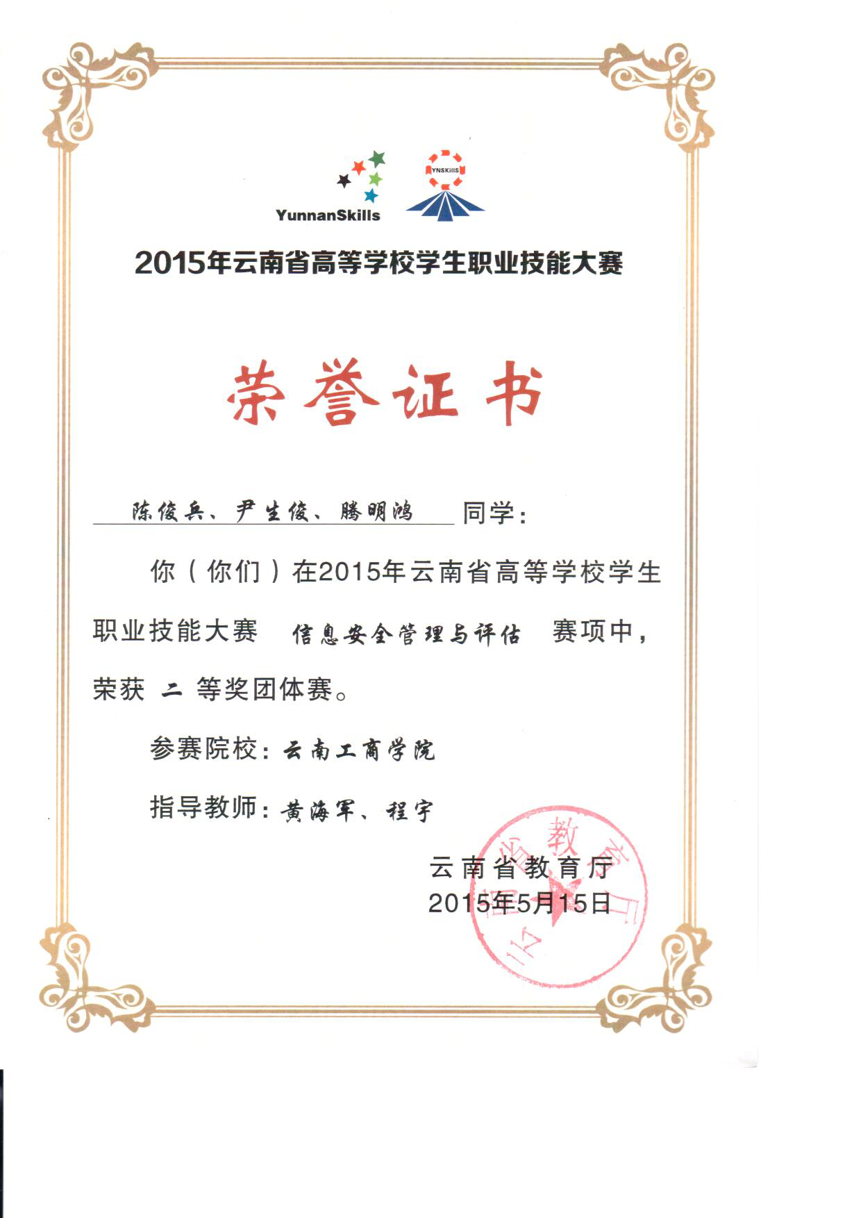(云南省)云南省信息安全管理与评估大赛二等奖